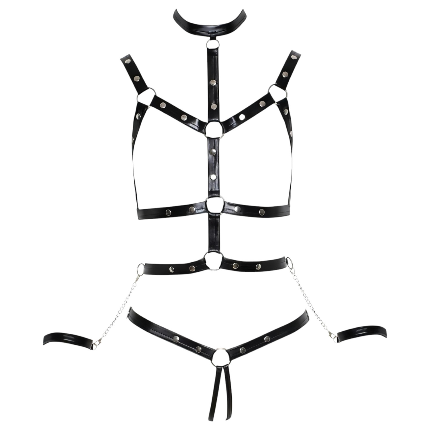 Pasinerk atrask viliojančių ir suvaržymo žaidimų pasaulį su šiuo ypatingu, dviejų dalių kūno diržų stiliaus bodžiu, papuoštu dekoratyviniais kniedėmis.