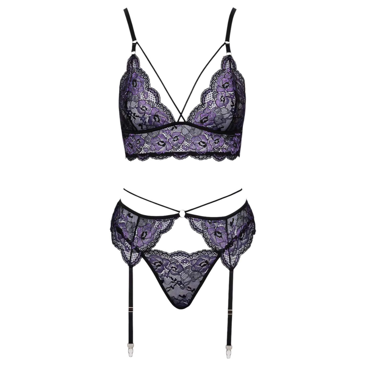 Cottelli - 3 dalių nėrinių apatiniai (juoda-violetinė) - L