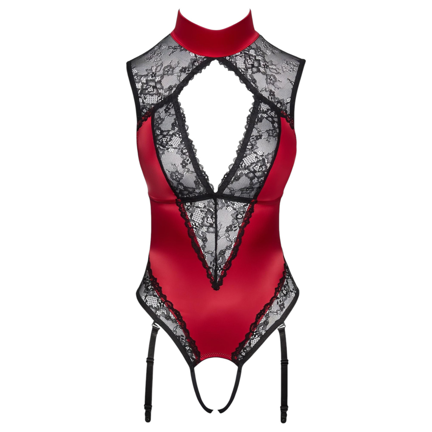 Apžvalga Cottelli - nėriniuotos kūno aksesuaras su kaklo dirželiu (raudonas)