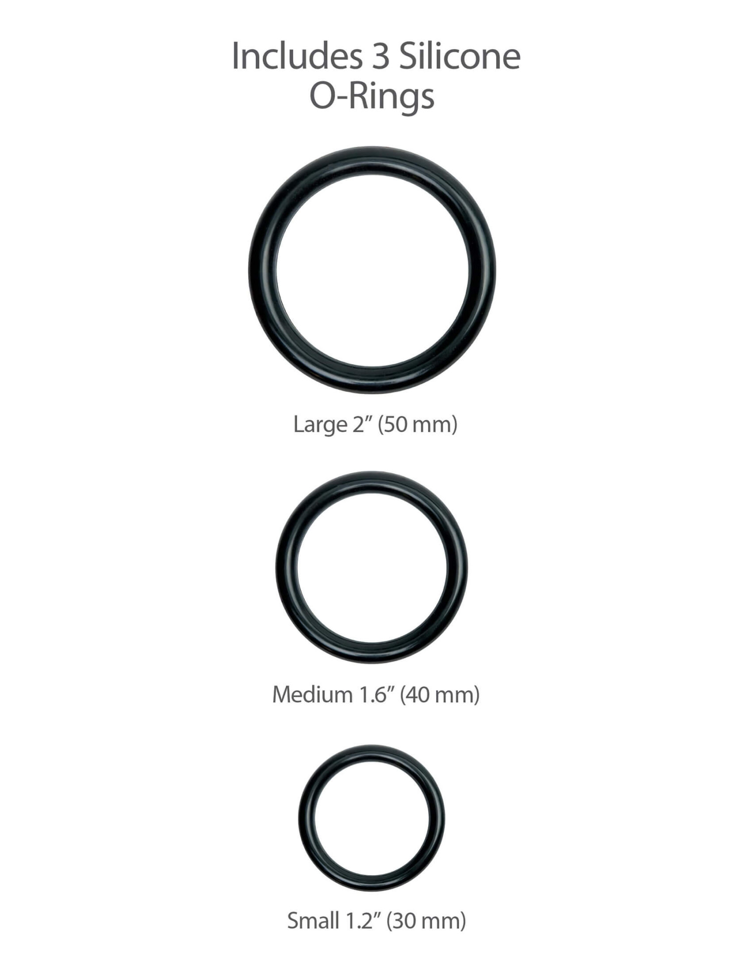 • Trys silikoniniai tvirtinimo žiedai - tinka skirtingoms dildo ar vibratoriaus apimtims
