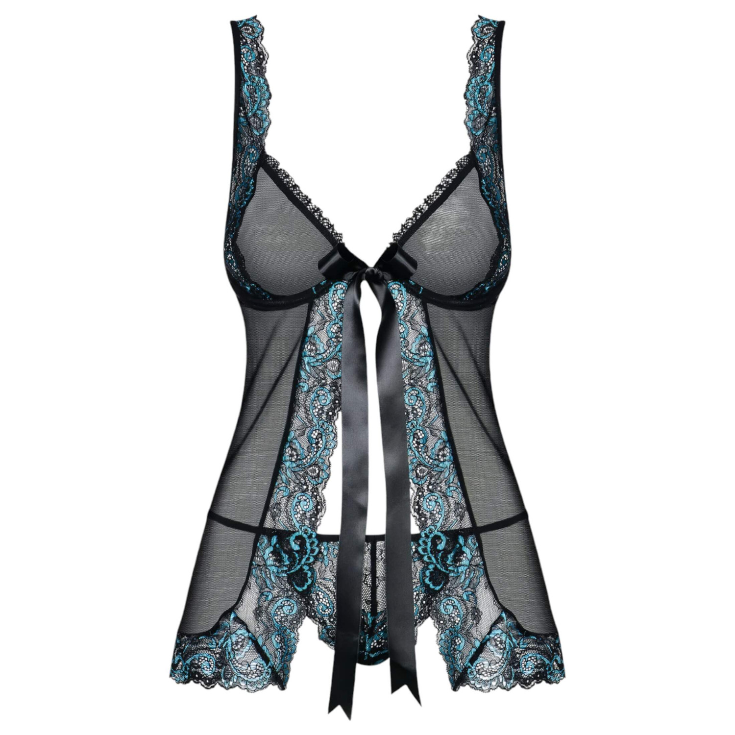 Obsessive Amanta - siuvinėtas babydoll ir tanga (juoda-turkio) - L/XL