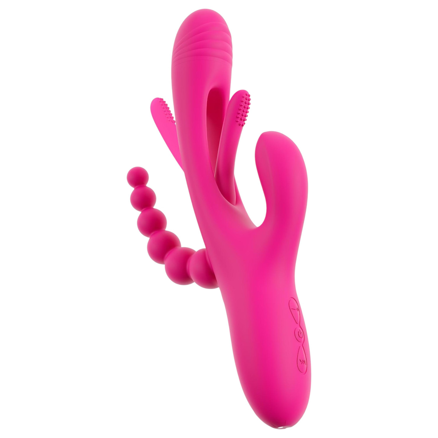 Patirk tris kartus daugiau malonumo su šiuo ergonomišku vibratoriumi, kuris vienu metu lepina vaginą, klitorį ir analinę zoną!