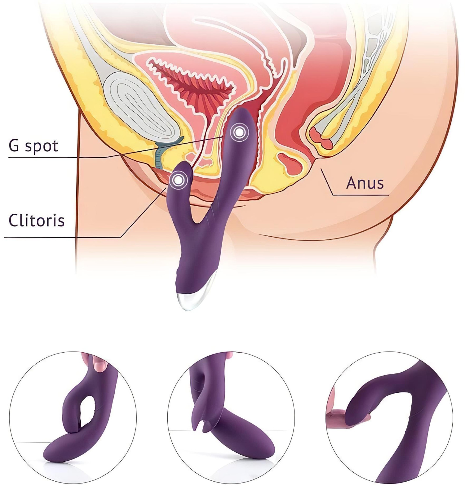 • Jei norisi stipresnės klitorio stimuliacijos, gali švelniai praskleisti lytines lūpas, kad atšaka tiesiogiai liestų klitorį.