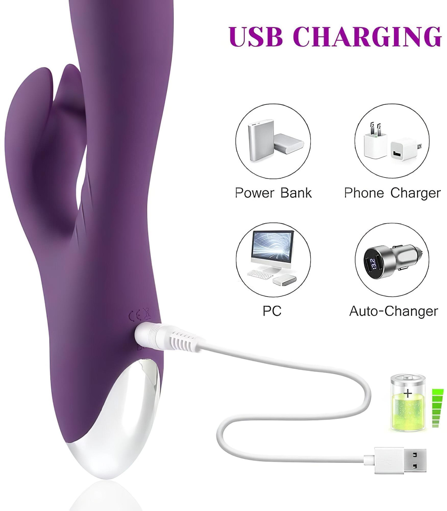 Vandeniui atsparus triušio vibruoklis su klitorio rankena (purpurinis)